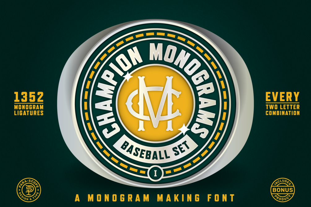 Step up to the plate with the Champion Monograms Font: Baseball Set 1 – a perfect fusion of vintage-style monograms and the vibrant spirit of baseball designed to elevate your creative game.
