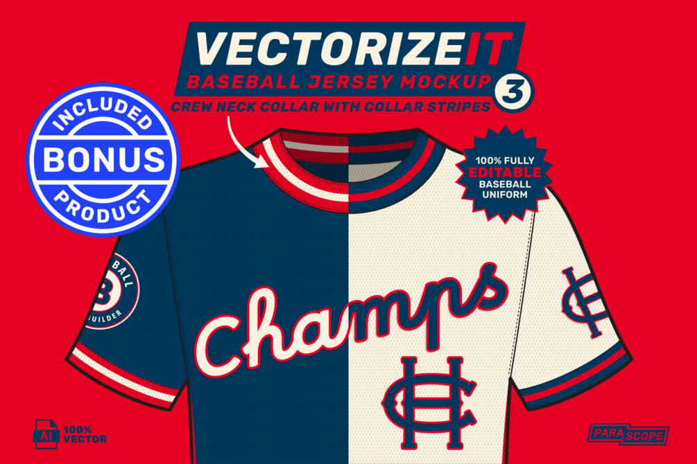 Plus there's a free BIG HITT'N BONUS! A Vector Baseball Jersey mockup which you can use to design and customize your own Baseball Jerseys right inside Adobe Illustrator.