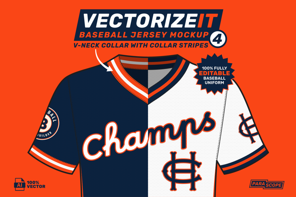 V neck collar vector head to toe baseball uniform mockup for Adobe Illustrator CS4+